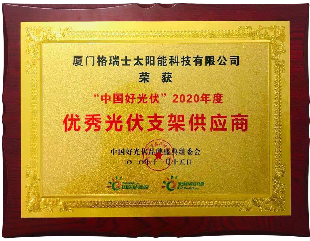 11月15日,第五届中国好光伏品牌盛典在京落下帷幕。厦门格瑞士凭借企业综合实力及品牌影响力,从300多家光伏企业中脱颖而出,荣膺2020年度优秀光伏支架供应商。