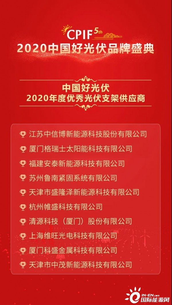 据了解“中国好光伏品牌年度盛典”活动是由能源行业权威媒体国际能源网于2016年正式发起,现已成为光伏行业最具影响力的品牌奖项之一,得到了行业的广泛关注。本届年会共吸引来自行业300余家光伏企业报名参与。“中国好光伏品牌榜”通过网络报名、专家审核、微信投票、专家评审等环节层层评选,严格选出,最终获奖企业均是行业各领域技术、产品或服a务的领先企业。
