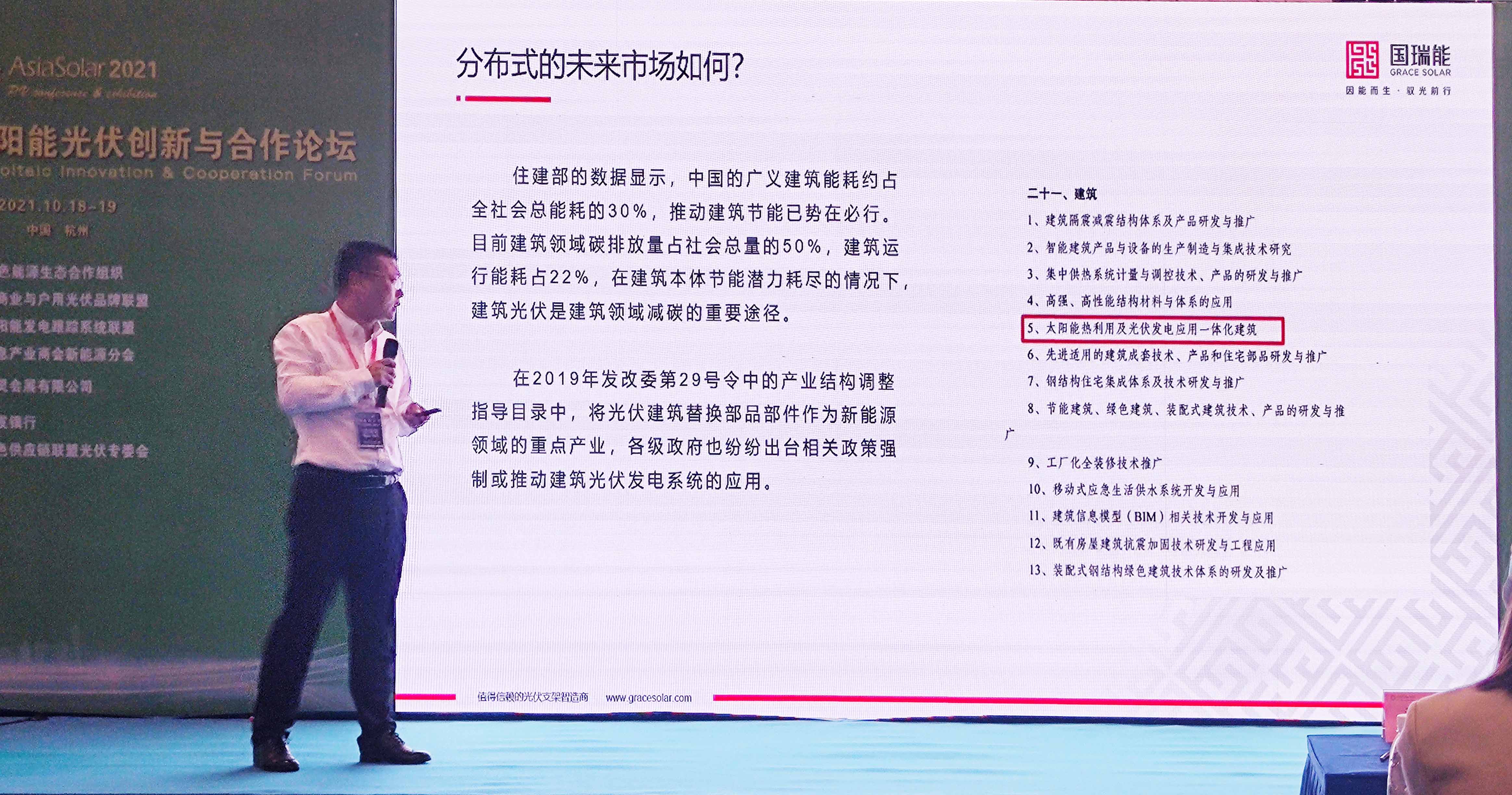 此外,主办方也设立了“光伏电站开发/建设及分布式整县推进创新模式”的主题论坛,针对整县推进中常见的问题进行探讨。国瑞能研发总监姜迪作为嘉宾,分享了《升级分布式解决方案——全面助力光伏“整县推进”》的“国瑞能”方案。