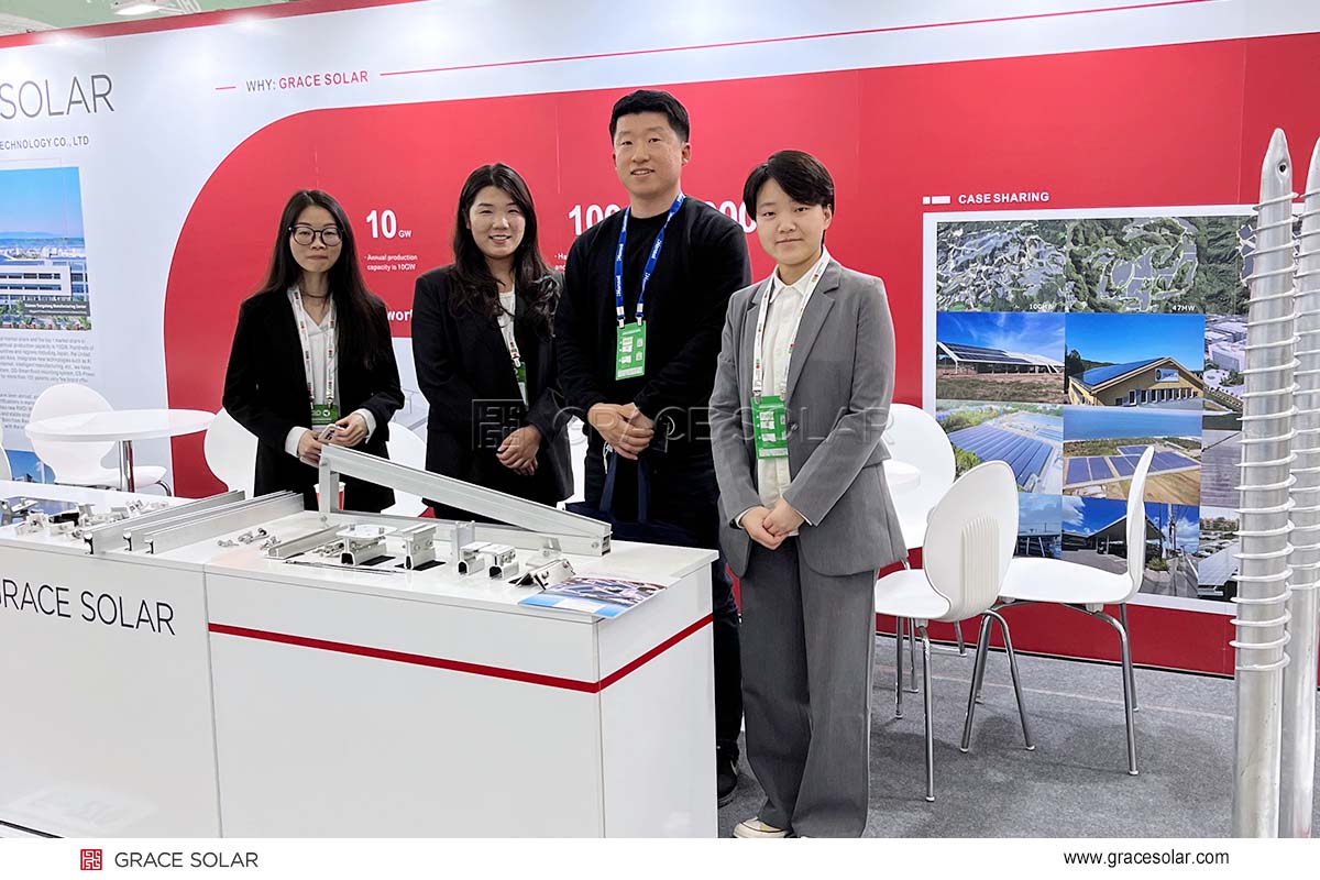 4月12日至14日,作为韩国最大、亚洲最具影响力的新能源展会之一,韩国的“第二十届国际绿色能源展览会(Green Energy Expo)”于大邱展览会议中心(EXCO)如期举行。本届展会亮点颇多,新技术、新产品随处可见,展会现场热闹非凡。作为全球领先的光伏支架制造商,国瑞能的最新款能慧-地面固定支架-铝合金地面支架系统、能舍-BAPV系统-屋顶支架系统等光伏支架产品更是展会现场焦点产品之一,吸引众多客户驻足咨询,实力彰显企业魅力。