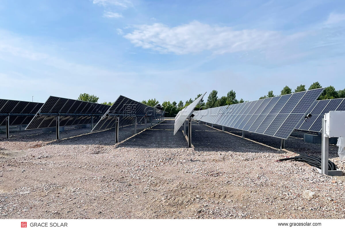 在保加利亚的近郊,国瑞能2.4MW跟踪支架系统重新定义了城市与能源的共生关系,该项目以“隐形电站”理念为核心突破。遇到暴雪时,系统会自动把支架倾斜到最大角度,让积雪快速滑落。这套智能除雪方案能保证冬季的大多数时候正常发电。生态合规性上也恰到好处,支架间距预留了鸟类飞行通道,噪音控制35分贝以下。
