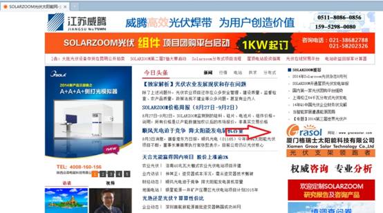 从2014年9月10日至2015年9月10日,在SOLAR ZOOM光伏网首页新闻栏右侧,将看到格瑞士品牌Grasol的身影。