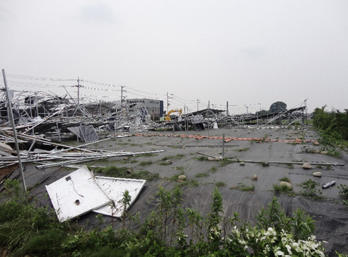 据日经BP社报道,6月15日下午4点至6点左右日本群马县伊势崎市和前桥市突遇冰雹和阵风,有的房顶被吹飞、有的电线杆被刮倒……。这阵强风还吹飞了伊势崎市三和町设置的光伏发电设备中的700多张太阳能电池板,并导致大片架台倒塌。