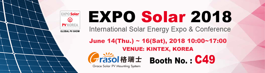 格瑞士太阳能科技有限公司,将于2018年06月13日参加位于韩国首尔的国际太阳能展会。展品包括格瑞士经典的太阳能屋顶支架,铝合金地面支架,打桩地面支架。虽然韩国参与光伏产品市场的竞争较晚,但是发展速度很快,通过不懈努力,韩国已在光伏产业的主要原料多晶硅生产方面处于全球领先地位。韩国政府一直关注世界能源市场动向,把发展再生能源提高到“国家能源战略”高度予以重视,并采取一系列有力措施,采取倾斜性政策多方扶持,使韩国太阳能产业迅速发展。韩国政府对太阳能发电的扶持政策主要包括:对太阳能发电设备、零部件生产、设施安装以及运营提供长期低利融资,以减轻企业初期投资的资金负担。厦门格瑞士太阳能科技有限公司是一家集“可再生能源投资、光伏电站工程服务、光伏电站整体建设方案和产品”三大业务为一体的高科技企业。 公司专业从事太阳能光伏领域产品的研发、生产、销售及服务,致力于为客户提供稳定可靠和经济高效的太阳能光伏系统解决方案。厦门格瑞士作为知名太阳能光伏品牌企业, 自成立至今,引领全球光伏市场的格瑞士太阳能产品,已销往全球100多个国家和地区的客户,是目前国内知名的太阳能光伏产品出口企业。