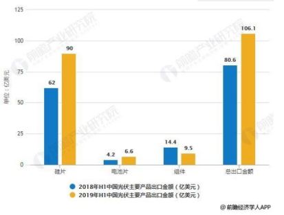 2018-2019年H1中国光伏主要产品出口金额统计情况