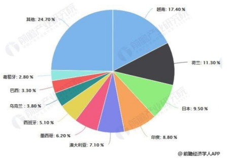 随着欧洲市场复苏,2019年上半年出口到荷兰、西班牙、乌克兰、葡萄牙、德国、比利时的组件明显增加。此外,越南超越印度成为中国光伏产品出口第一大市场,主要原因在于越南总理签发关于在越南发展太阳能发电项目鼓励机制的决定。