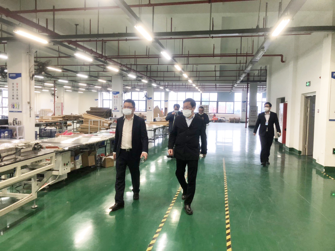 汇报结束后,在佰明集团董事长带领,区领导一行实地参观工厂产线,一边不时地询问相关情况,了解企业实际生产状况。李毅区长对于佰明集团的发展给予高度肯定,并鼓励企业克服困难、继续努力。