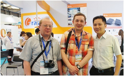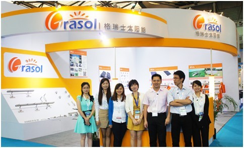 展会上格瑞士太阳能展出了GS系列屋顶支架系统、地面支架系统,共接待1000多名客户和专家学者,其国外观众80多名,以亚洲、美洲和欧洲客户为主,意向客户达到118名,收到了良好的展览效果。