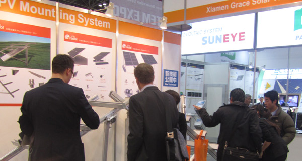 在琳琅满目的会场中格瑞士太阳能脱颖而出,占据国外众多业内人士眼球。格瑞士太阳能展出的太阳能光伏地面打桩系统,屋顶倾斜系统不仅在外观上设计精美,型 材上呈现精悍,更是在实际应用中表达了人性化安装,展现出卓越的稳定气质,深受业内人士的热情追捧。这成为格瑞士大力进军日本市场发展的又一个里程碑。