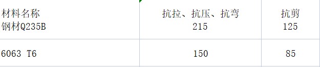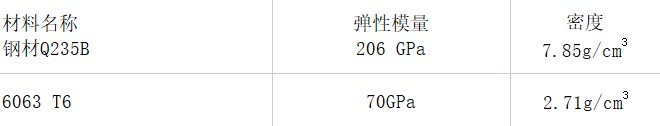 支架一般采用Q235B钢材和铝合金挤压型材6063 T6,两者的设计强度对比如下表所示: