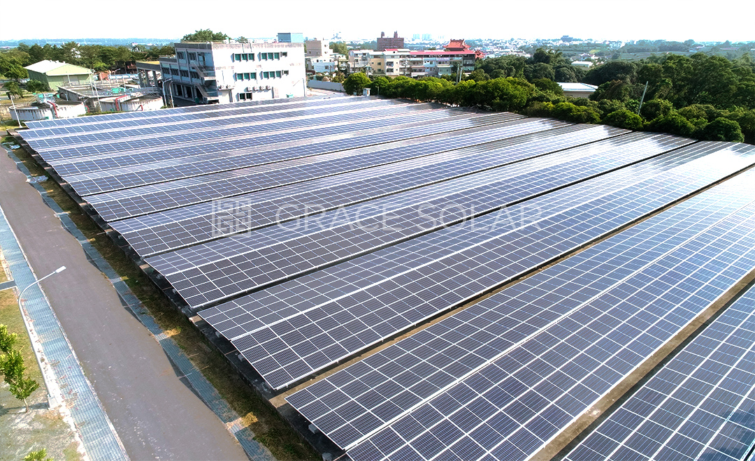 台湾高雄某供水厂在园区内,一座分布式光伏电站拔地而起。国瑞能为该项目提供了地面光伏支架解决方案。根据场地条件,采用水泥墩基础+双排对立而站的排布方式,充分利用场地空间,实现更加稳定、高效的绿电供应。