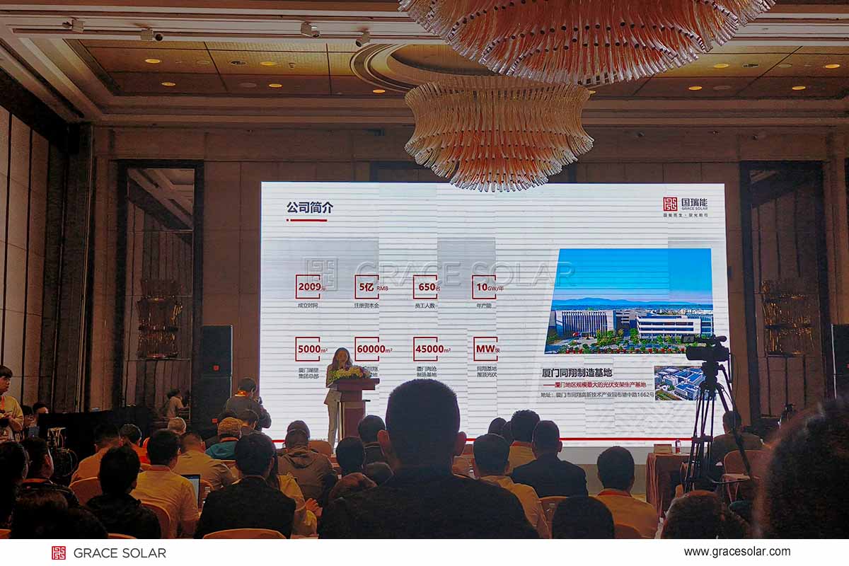 5月24日上午,国瑞能销售总经理李若莹女士受邀出席“第十六届全球光伏前沿技术大会”之“光伏电站智能运维与并网技术”主题论坛,与光伏行业领袖,业界先进企业共同探讨光伏新未来,并发表《AI智能控制在跟踪器的应用升级》专题演讲。