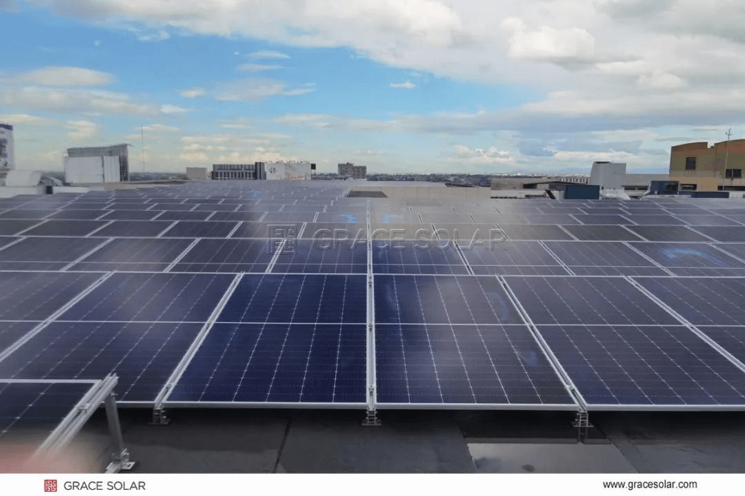 首先,国瑞能以丰富的产品谱系和服务方案构建了完善的产业链生态,以满足不同客户的需求和环境要求。位于菲律宾SM城市广场的4.5MW 屋顶分布式光伏电站项目,便是国瑞能针对当地市场需求量身打造的最优方案。该项目根据客户实际需求,充分考虑了菲律宾高温、多雨、台风频发等气候特点,选用了耐候性强、抗风压能力高的能舍-屋顶支架系统解决方案,确保电站能够在恶劣环境下稳定运行。此外,针对澳洲、美国等市场,国瑞能还推出了黑色铝合金型材的光伏支架,这种材质不仅使光伏系统与屋面完美融合,还更加符合建筑美学设计。