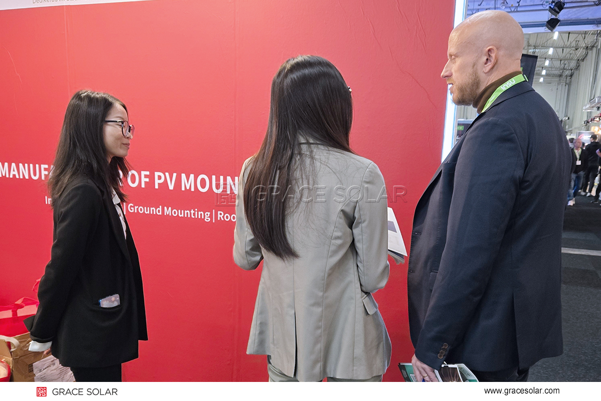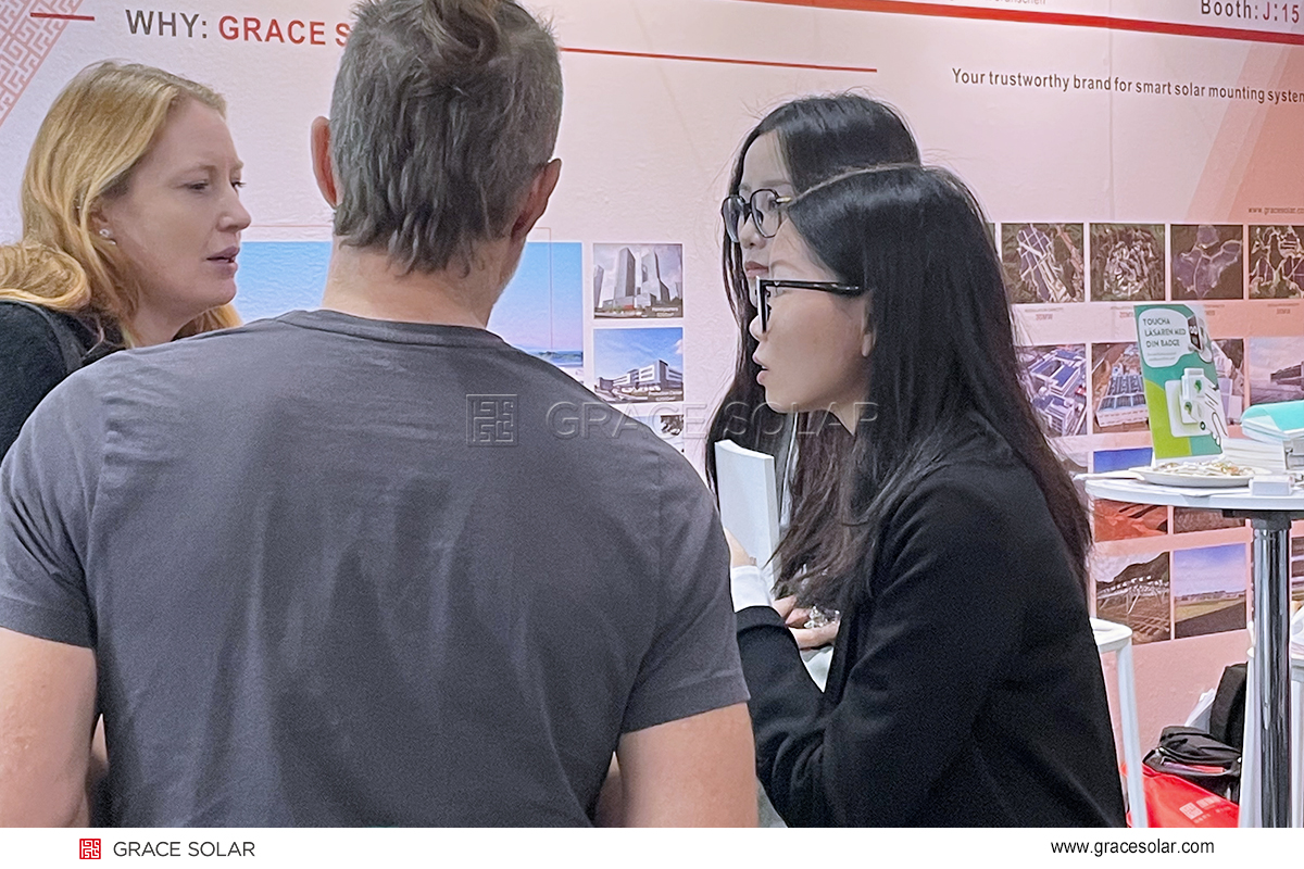展会现场,世界各地的参展者和访客络绎不绝,纷纷在国瑞能的展场前驻足,向国瑞能的品牌展现出浓厚的兴趣和浓烈的合作意向。展位前,国瑞能的工作人员以热情的态度和专业的光伏知识储备为前来参展的访客答疑解惑。