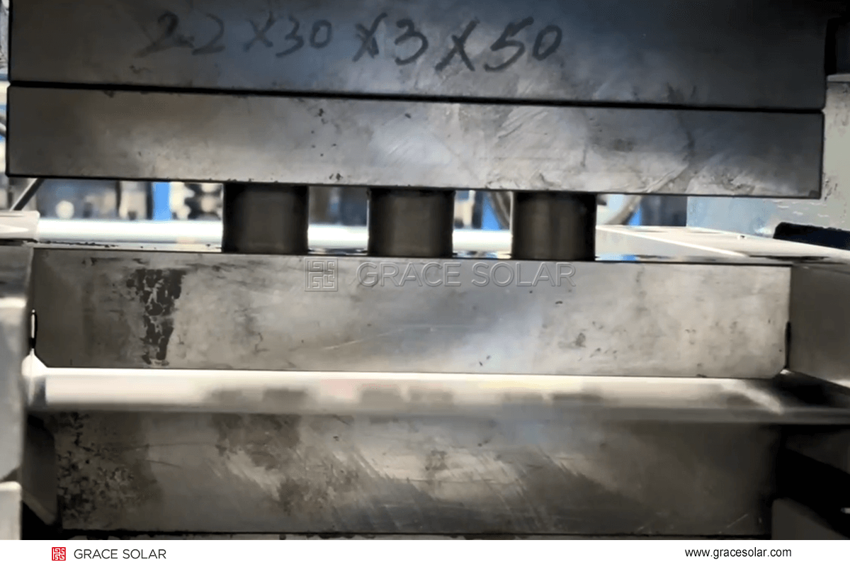 在传统光伏支架生产中,碳钢产品生产往往需要人工监控、调整,很大程度上限制了产线的运行速度。然而,国瑞能“智”造中心已完成全新升级,实现“黑灯工厂”化。全自动生产线正稳步运行着,从原材料开卷、成型、冲孔到切割等,全程无需人工干预。得益于这种高度自动化的设计,一条条产线可实现24小时运转,正是这种“人停机不停”的自动化能力,让年产量得以稳步攀升,碳钢产品年产能达30万吨。