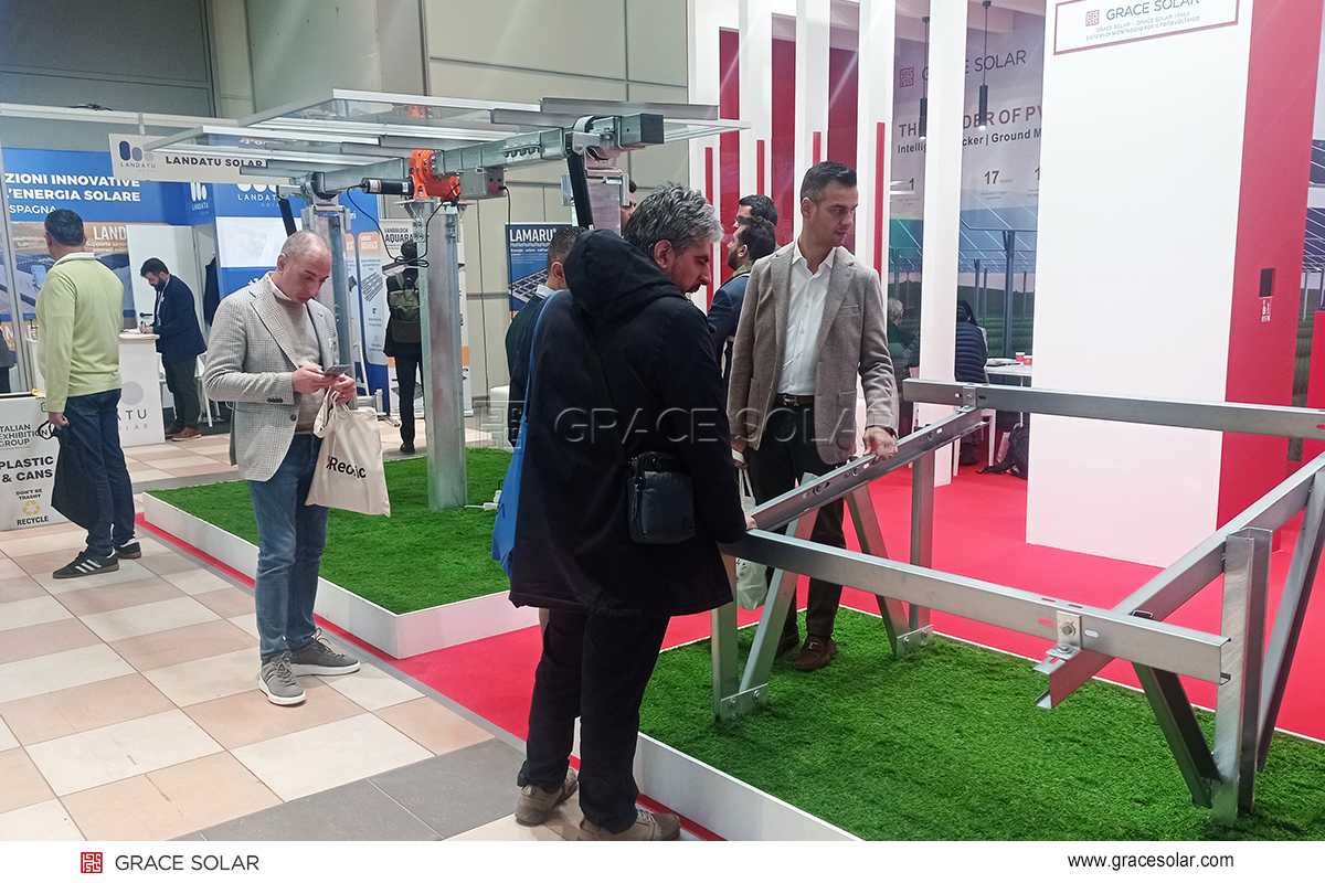 针对意大利及南欧地区典型的地中海气候特点——夏季强日照、冬季多雨、局部强风频发,国瑞能新一代智能跟踪系统成为展位技术亮点。该系统在提升发电效率的同时,也能有效应对复杂天气影响,确保系统在恶劣天气下依然稳定运行。多位电站投资方就其在意大利南部等高辐照地区的项目应用,与技术人员展开深入探讨。